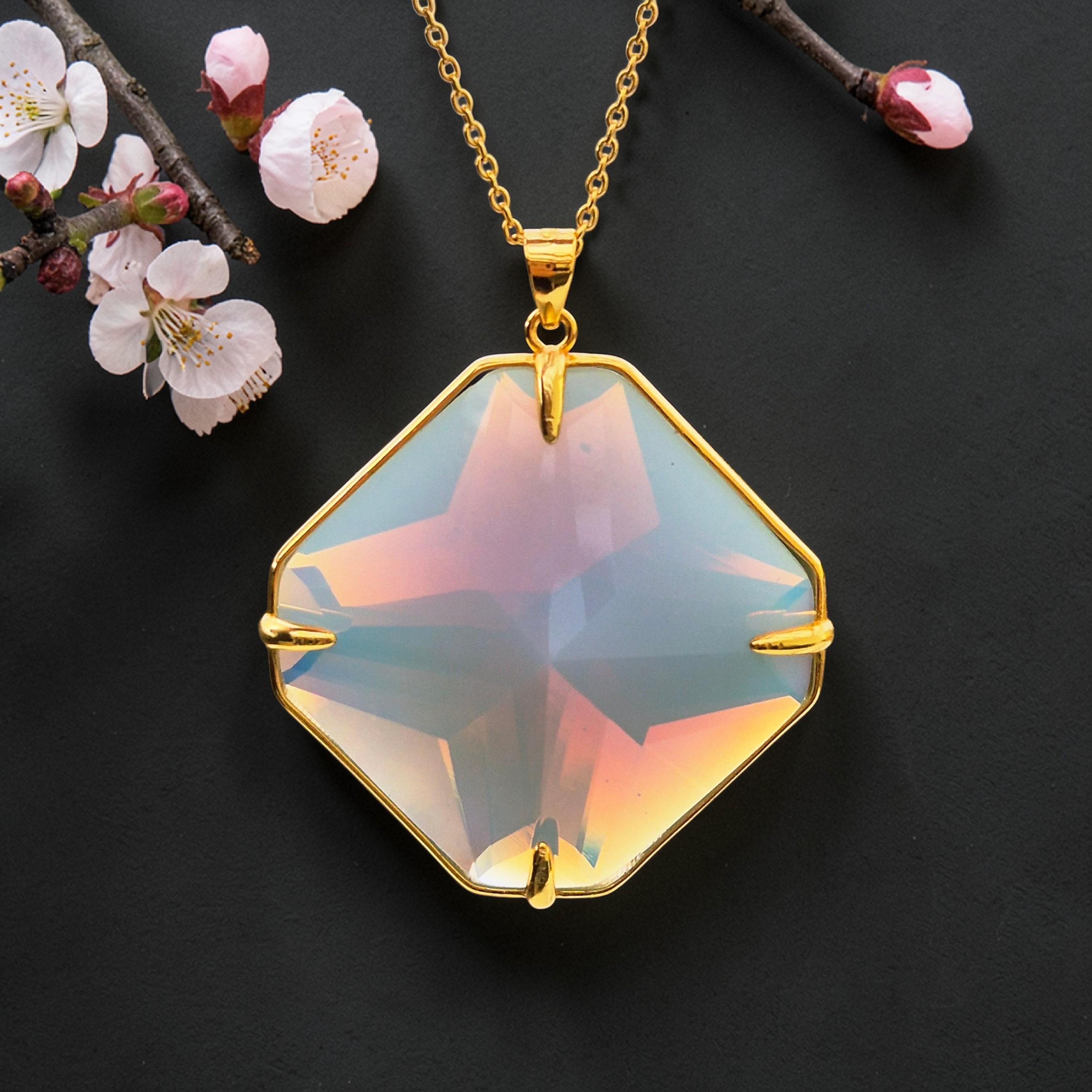 Milky Cosmic Ice Magician Stone Pendant Andara with connection to Angel Ariel, high vibration, strength, courage, inner power, handmade