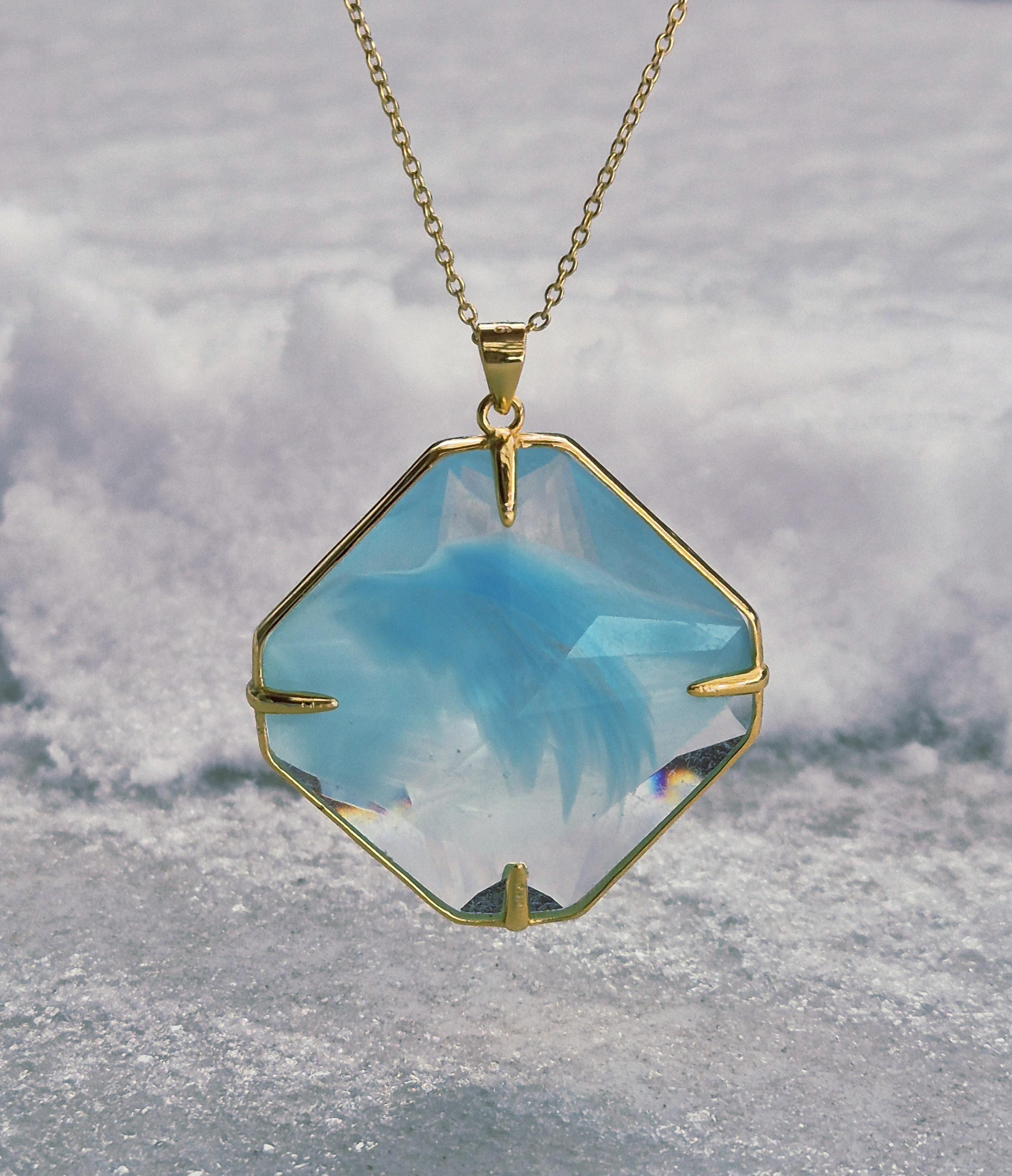 Aqua Serenity Magician Stone Anhänger Andara mit Verbindung zu Erzengel Haniel Schöpferkraft 5+++ göttlicher Schutz hochschwingend DNA-Aktivierung Handgefertigt 3cm Mount Shasta